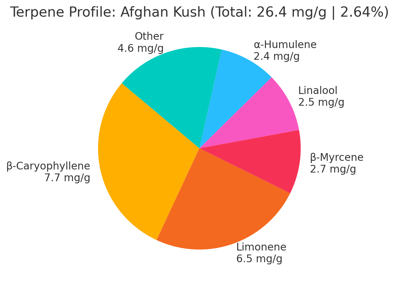 Afghan Kush is an exceptional cannabis strain that offers a unique twist on the popular Kush Mints strain. This particular strain is a special cutting of a cross between Kush Mints and Afghani that has been carefully cultivated to produce an exceptional bud with a distinctive appearance and aroma that is sweet with subtle hints of mint. Testing over 30% total THC and nearly 3% terpenes, Afghan Kush will be your favorite bud!